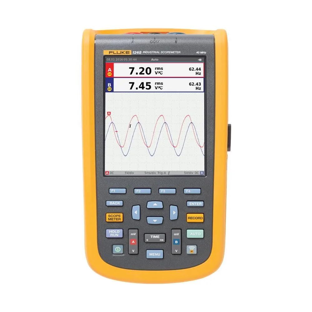 The FLUKE 124B/JP/S ScopeMeter is a robust and versatile tool for electrical and electronic measurements. It integrates a dual-input digital oscilloscope and a true-RMS digital multimeter into a single handheld device.