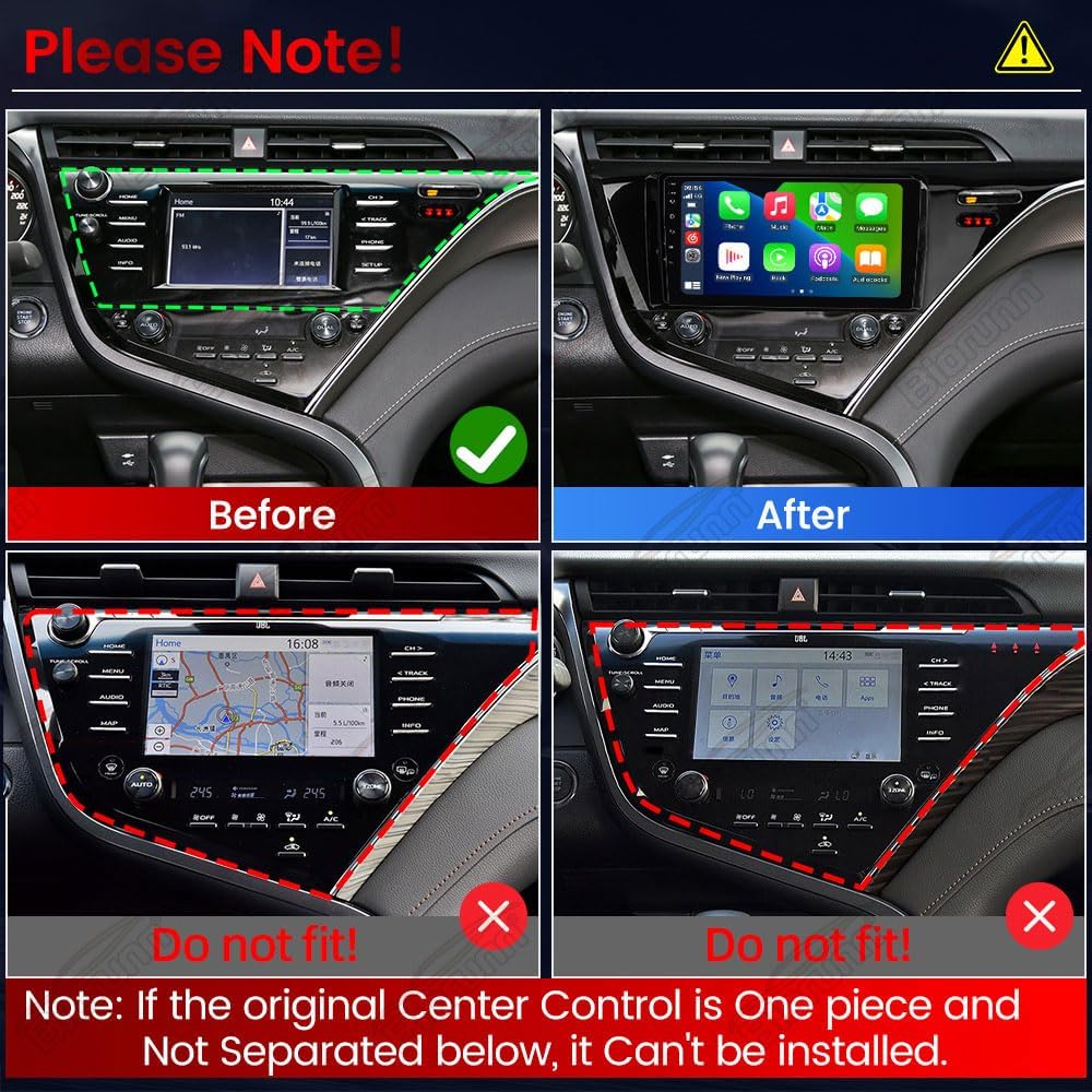 Please verify your car's year and center console design carefully. If your original center control is a one-piece unit and not separated below, it cannot be installed. Refer to the image below for visual guidance.